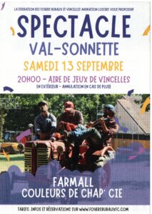 En septembre 2025 le spectacle Farmall de Couleurs de Chap’Cie était présenté dans le cadre bucolique de l’aire de jeux de Vincelles.